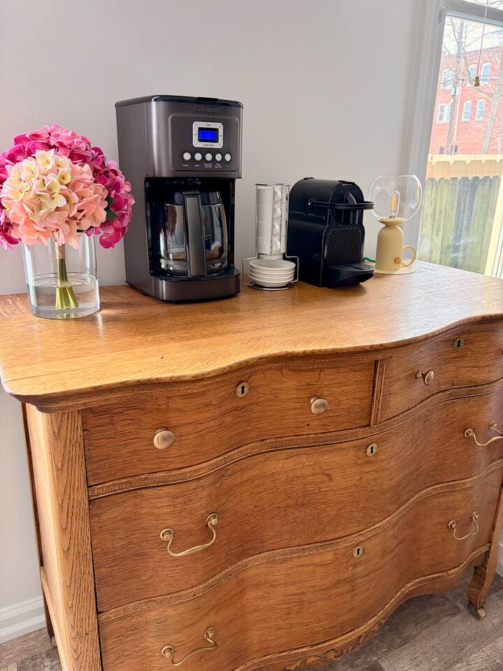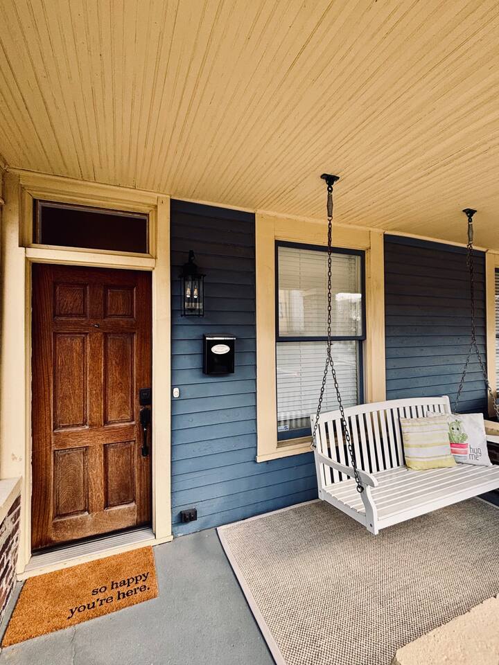 Enjoy your very own private historic townhome. All indoor and outdoor spaces are fully private. Sleeping Arrangements (Sleeps 8 | 3 Bedrooms | 5 Beds): -Bedroom 1: King Bed -Bedroom 2: King Bed -Bedroom 3: Bunks (Queen on bottom, Twin XL on top) -Queen Murphy bed on main level -High quality mattresses and linens on all beds Kitchen: We've thoughtfully provided a fully stocked and equipped kitchen. Everything you need to cook...or eat that delicious takeout you just ordered :) -Coffee Bar w/ Nespresso and drip coffee machine (Nespresso pods provided) -Stove, oven, fridge, microwave, dishwasher -Small appliances (see photos) Living Spaces: -Comfortable living room with room for all -Smart TV -Business-grade Internet equipment throughout -Dedicated workspace/desk -Large dining table for meals or game nights (Seats 8) Bathrooms: -1 full bathroom upstairs -1 half bathroom on main level Outdoors: -Private fenced back yard with private entry from parking area -Private deck with outdoor dining table and chairs -Covered front porch with seating Parking: -Dedicated reserved off-street parking on the property -Private gate to back yard and back entrance to home -No parking permits required - easy!